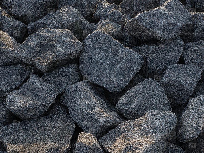 Искусственная насыпь или берег, сделанный из огромных гранитных блоков