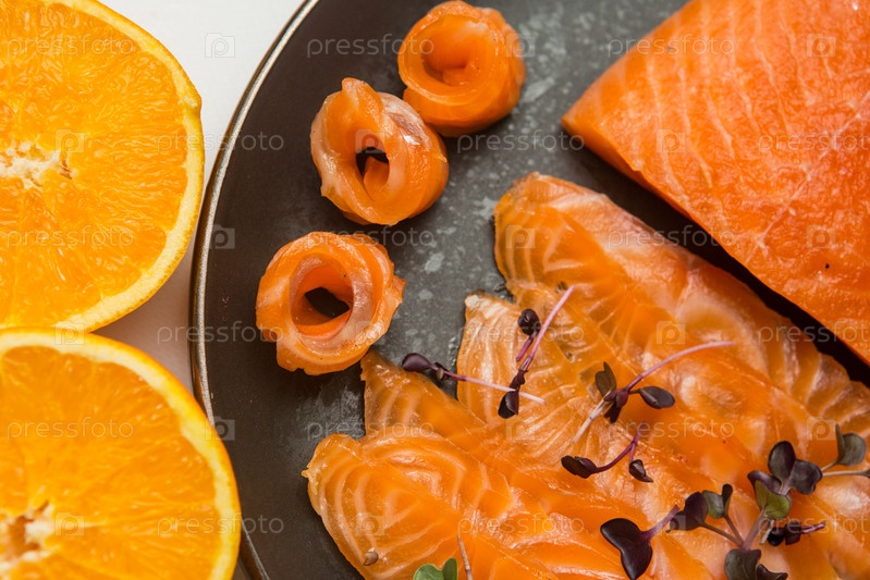 Соленая красная рыба с морской солью