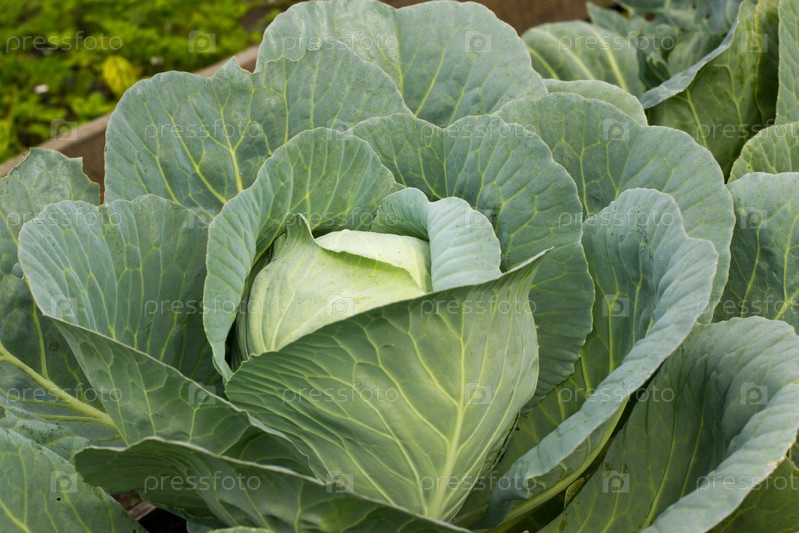 Большая капуста в саду. Свежая зеленая большая капуста органические овощи на ферме. Деталь капусты или фон капусты