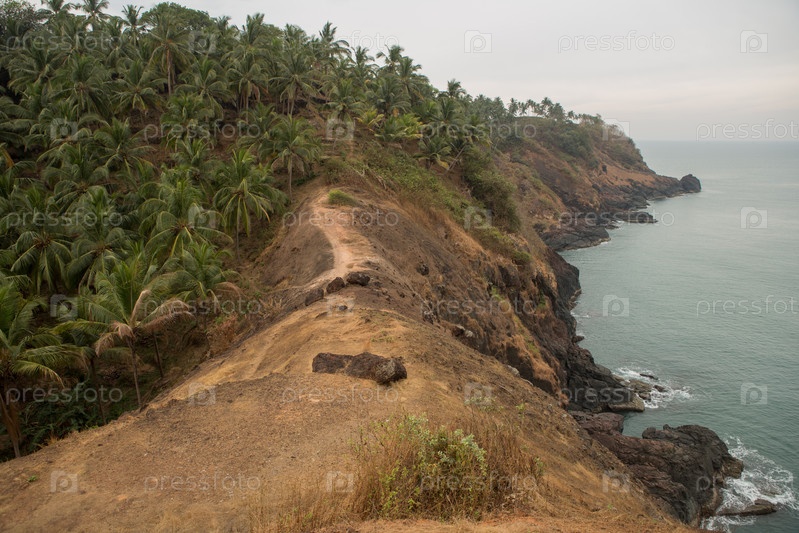 Лестница, ведущая вдоль крепостных стен к башне крепости Кабо де Рама в Гоа, Индия