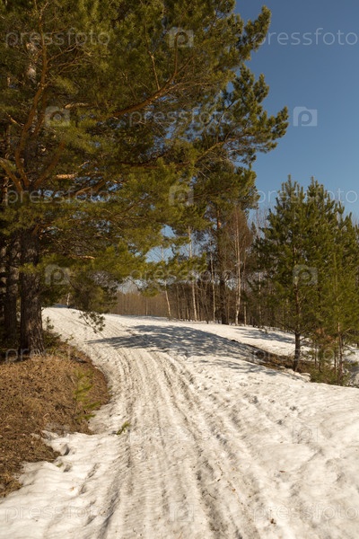 Дорога через хвойный лес весной, Сибирь