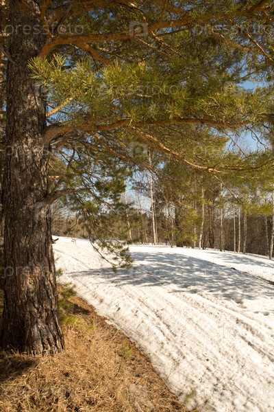Дорога через хвойный лес весной