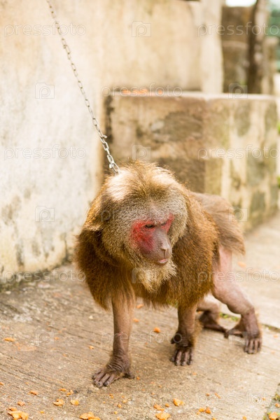 Обезьяна на цепи в зоопарке