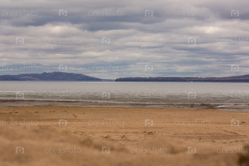 Песчаный пляж на берегу реки Енисей. Россия, Республика Хакасия