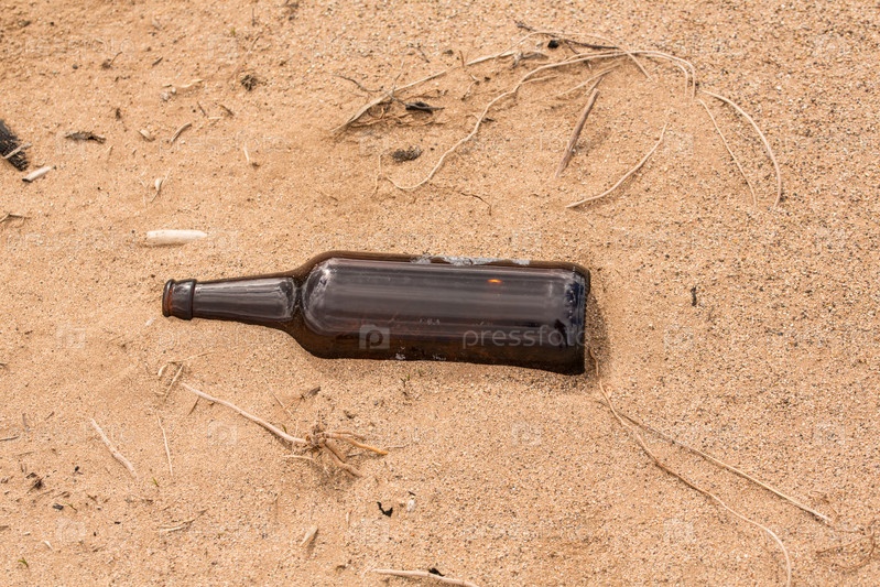 Кто-то оставил пустую бутылку на песке вместо того, чтобы сдать ее на переработку