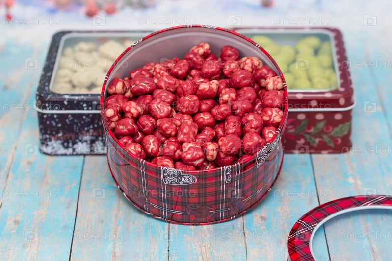Рождественские сладости, банка, полная ярких разноцветных конфет и леденцов