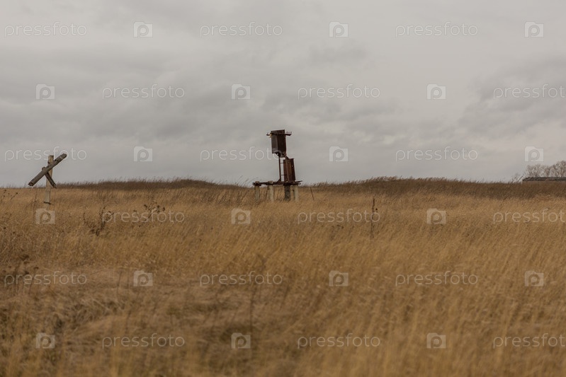 В поле стоит старый трансформатор без проводов