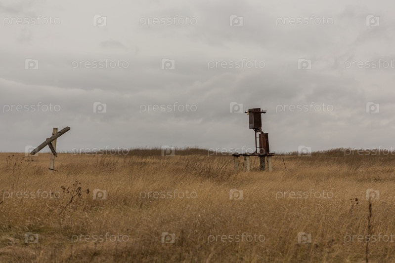 Старый трансформатор без проводов находится в поле