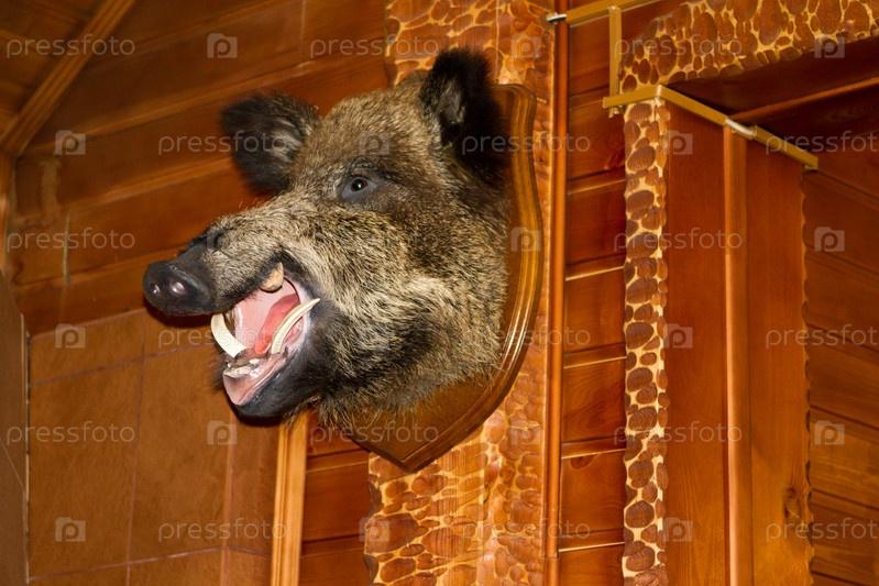 Чучело головы дикого кабана с оскаленной пастью
