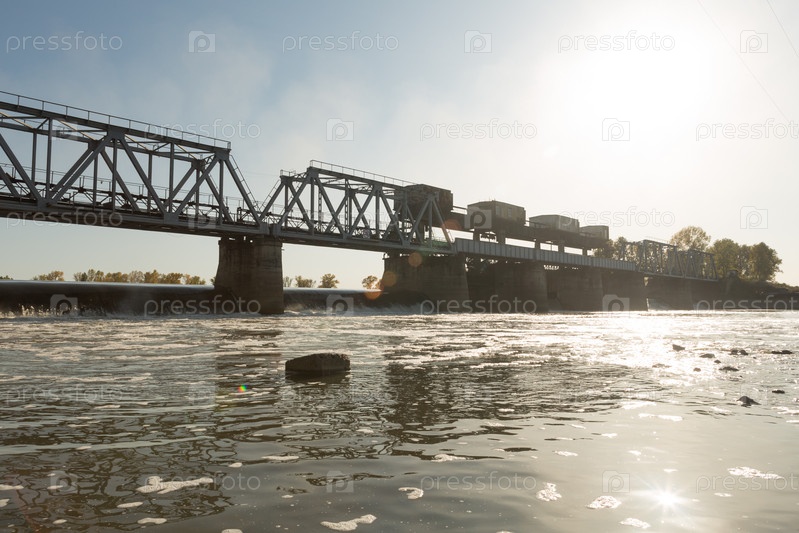 Плотина тепловая станция на реке с железнодорожным мостом