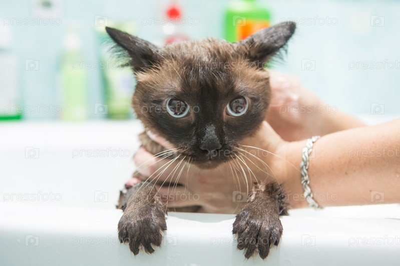 Кошачья ванна. Мокрая кошка.Кошка не любит мыться в ванной