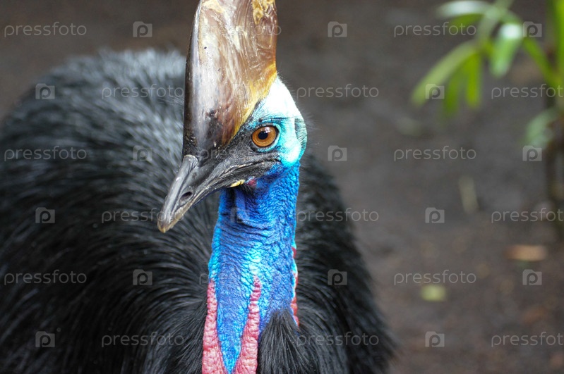 Южный казуар, Casuarius casuarius, также известный как двустворчатый казуар, австралийская большая лесная птица, детальный скрытый портрет из темного тропического леса, Папуа-Новая Гвинея