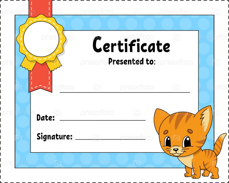 Шаблон сертификата для детей. Красочный школьный и дошкольный диплом. С милым персонажем. Векторная иллюстрация