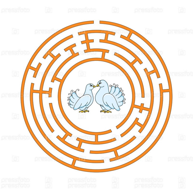 Круговой лабиринт. Игра для детей. Головоломка для детей. Круглая головоломка лабиринта. Цветная векторная иллюстрация. Найдите правильный путь. Рабочий лист по образованию