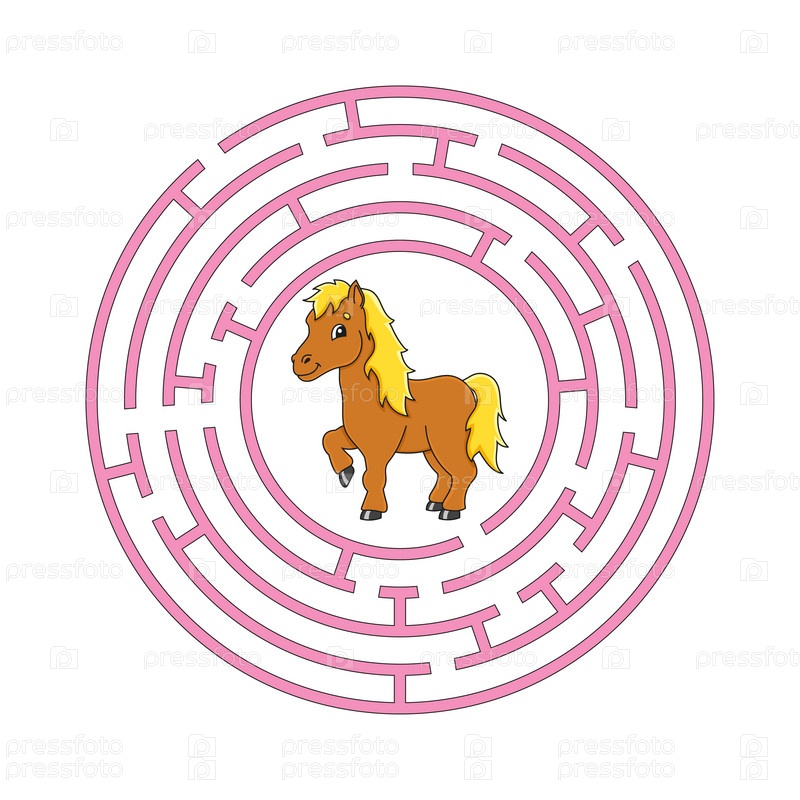 Круговой лабиринт. Игра для детей. Головоломка для детей. Круглая головоломка лабиринта. Цветная векторная иллюстрация. Найдите правильный путь. Рабочий лист по образованию