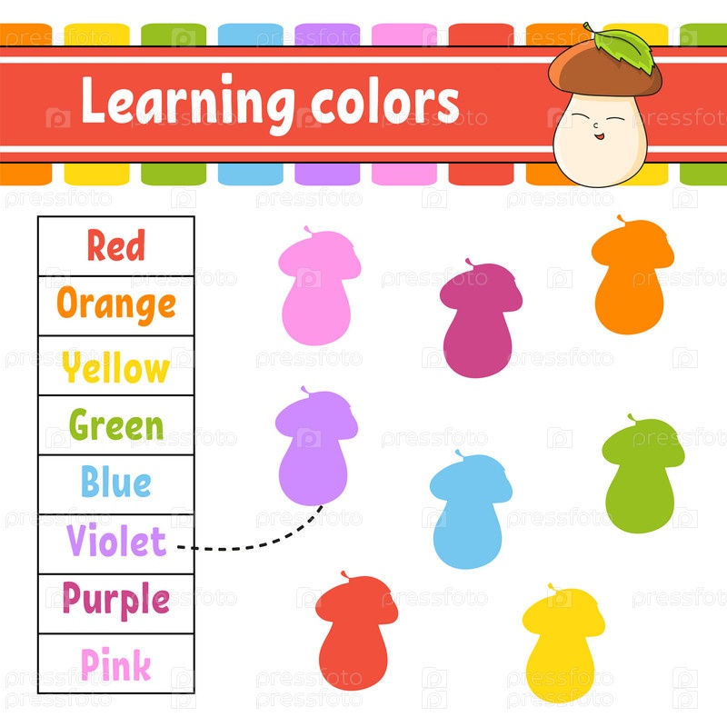 Изучаем цвета. Образовательный развивающий рабочий лист. Страница с заданиями с картинками. Игра для детей. Забавный персонаж. Мультяшный стиль. Векторная иллюстрация