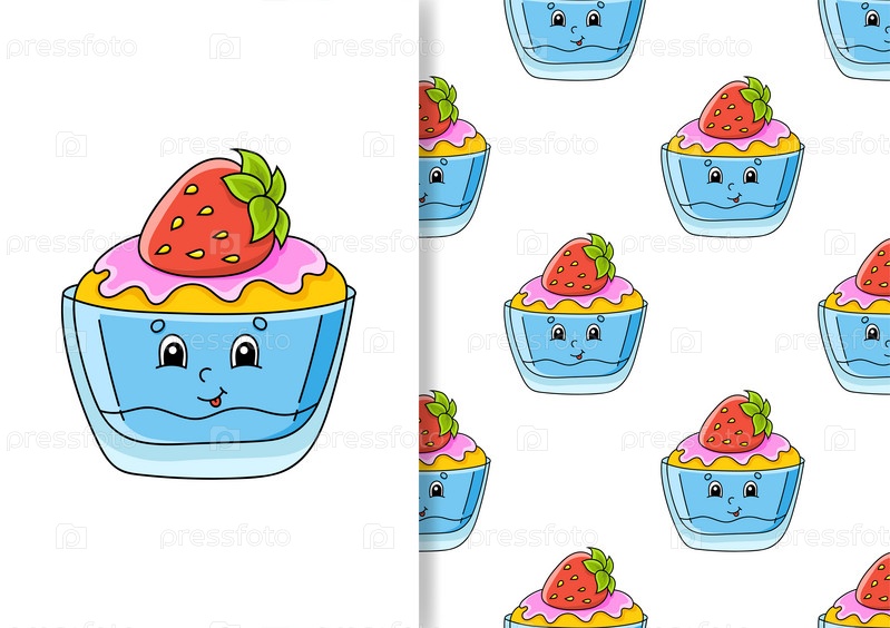 Бесшовный узор. Мультяшный стиль. Нарисованный от руки. Цветная векторная иллюстрация, изолированная на белом фоне