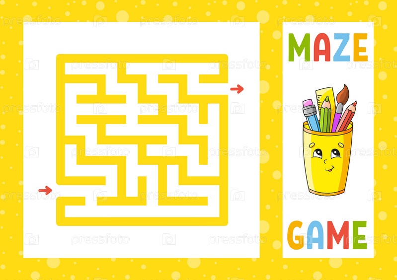 Квадратный лабиринт. Игра для детей. Головоломка для детей. Счастливый персонаж. Головоломка лабиринта. Найдите правильный путь. Векторная иллюстрация
