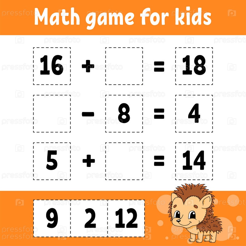 Математическая игра для детей. Образовательный развивающий рабочий лист. Страница с заданиями с картинками. Игра для детей. Цветная изолированная векторная иллюстрация. Забавный персонаж. Мультяшный стиль