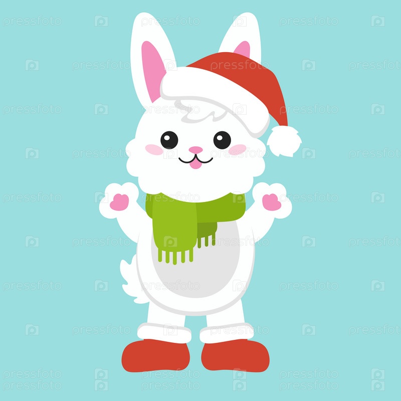 Мультяшный персонаж рождественский кролик. Красочные векторные иллюстрации. Изолированный на цветном фоне. Элемент дизайна. Шаблон для вашего дизайна, книги, наклейки, открытки