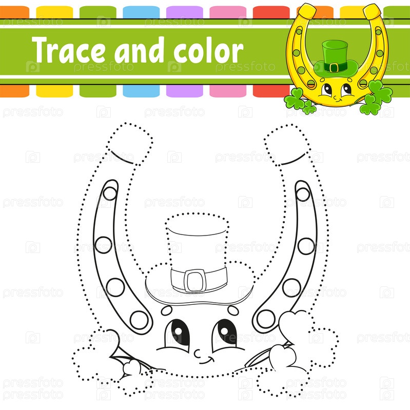 Обведи и раскрась. Раскраска для детей. Практика письма. Развивающий рабочий лист. Страница с заданиями. Игра для малышей. День Святого Патрика