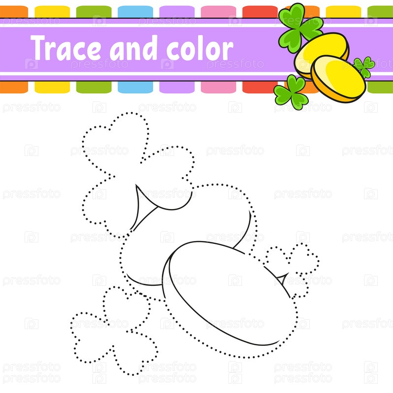 Обведи и раскрась. Раскраска для детей. Практика письма. Развивающий рабочий лист. Страница с заданиями. Игра для малышей. День Святого Патрика