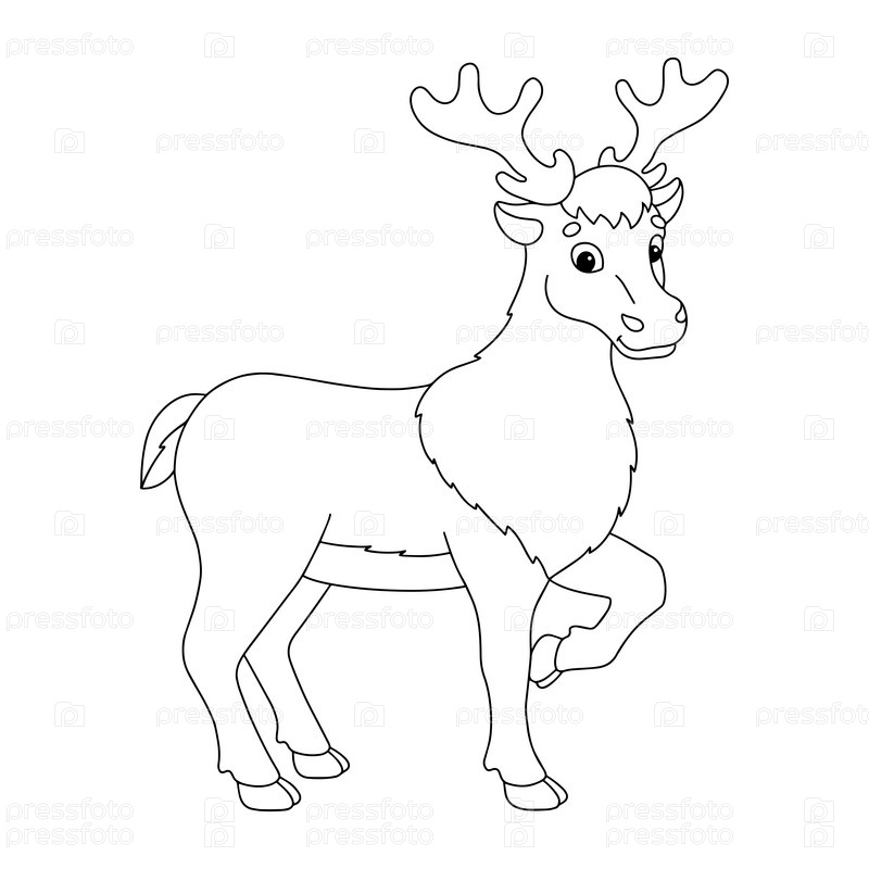 Животное олень. Страница раскраски для детей. Персонаж в мультяшном стиле. Векторная иллюстрация на белом фоне