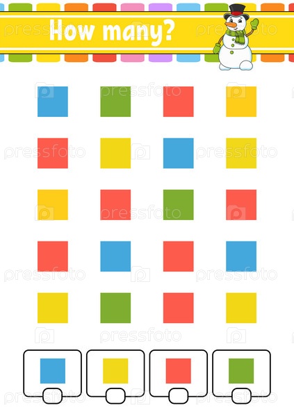 Игра-подсчет для детей. Счастливые персонажи. Изучение математики. Сколько объектов на картинке. Рабочий лист по образованию. С местом для ответов. Изолированная векторная иллюстрация в милом мультяшном стиле