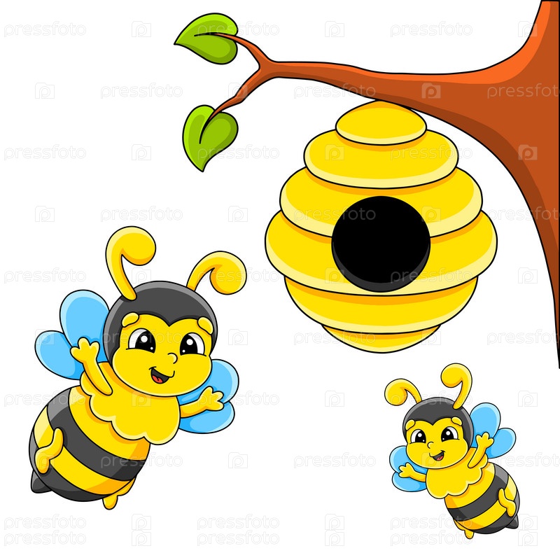 Мультяшный персонаж пчела. Изолированный на белом фоне. Элемент дизайна. Шаблон для вашего дизайна, книги, наклейки, открытки. Векторная иллюстрация