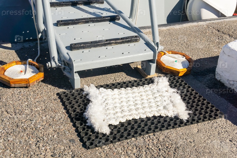 Морская традиция: белоснежный коврик, сплетенный из веревки, перед трапом подчеркивает чистоту палубы корабля
