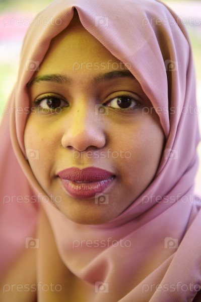 Портрет радостной ближневосточной девушки в хиджабе крупным планом
