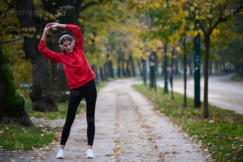 Спортивная молодая женщина делает вдох и расслабляется после пробежки и растяжки. Тренировка женщины и упражнения для тренировки на улице