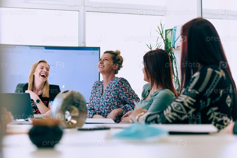 Разнообразная бизнес-группа обсуждает проекты в современном стеклянном офисе