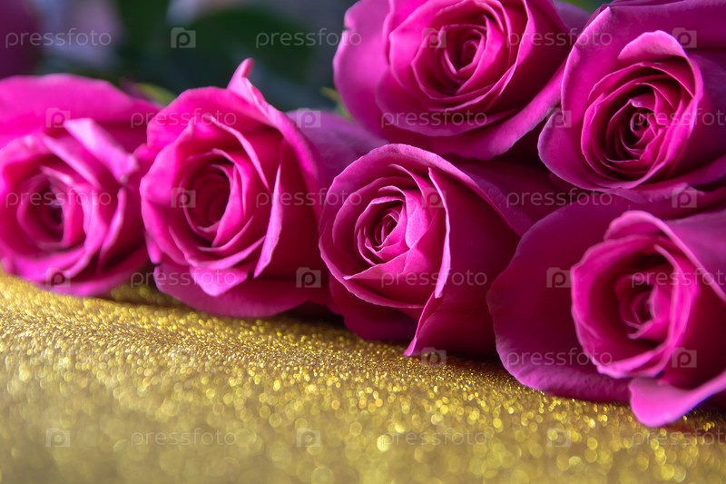 Розовые бутоны роз на золотом фоне