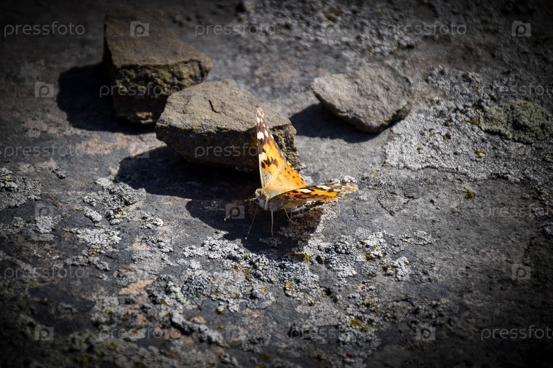 Бабочка на камнях Ванесса Кардуи Репейница