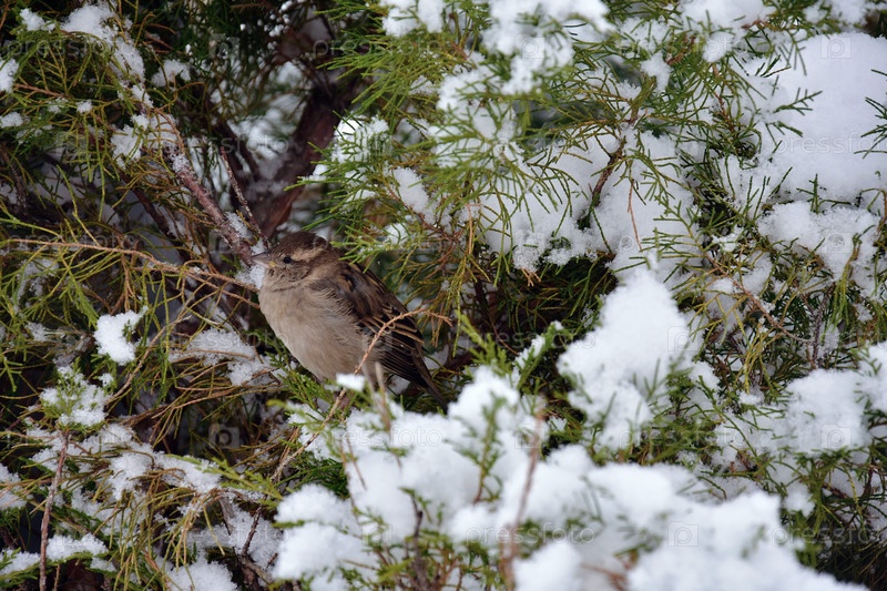 воробей в снегу