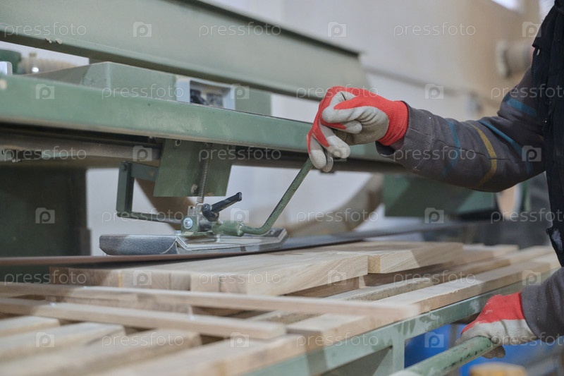Крупный план рабочего, аккуратно режущего и строгающего деревянные детали для мебели в деревообрабатывающей промышленности