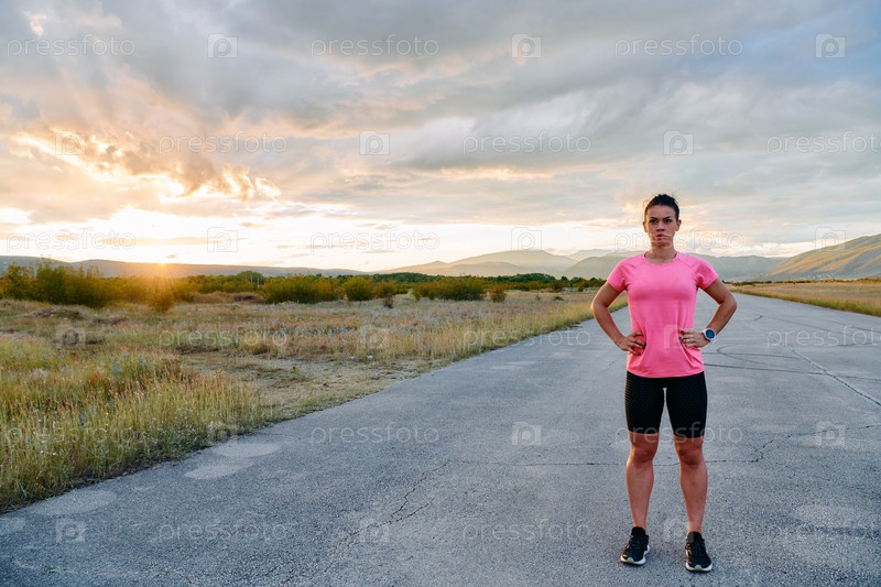Спортсмен растягивается на закате после интенсивной пробежки
