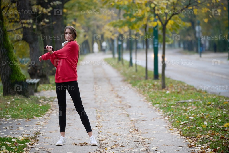 Спортивная молодая женщина делает вдох и расслабляется после пробежки и растяжки. Тренировка женщины и упражнения для тренировки на улице