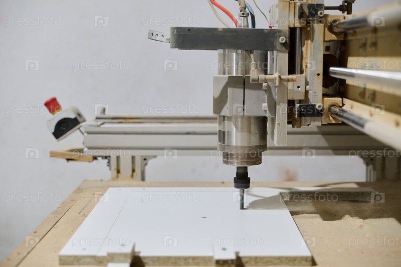 Крупный план станка с ЧПУ, точно режущего и обрабатывающего деревянные доски