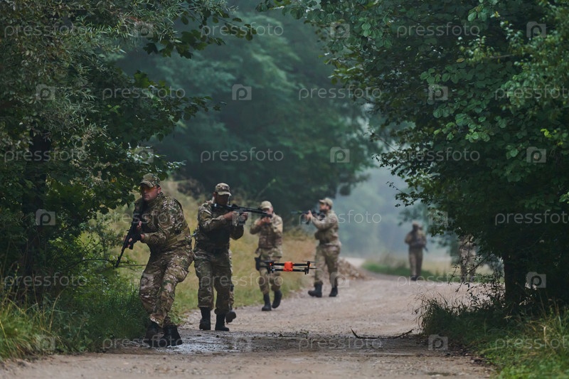Элитное военное подразделение проводит парад и охраняет лес, используя беспилотники для сканирования местности и разведки, демонстрируя свои передовые навыки и специальную подготовку в операциях с высоким риском
