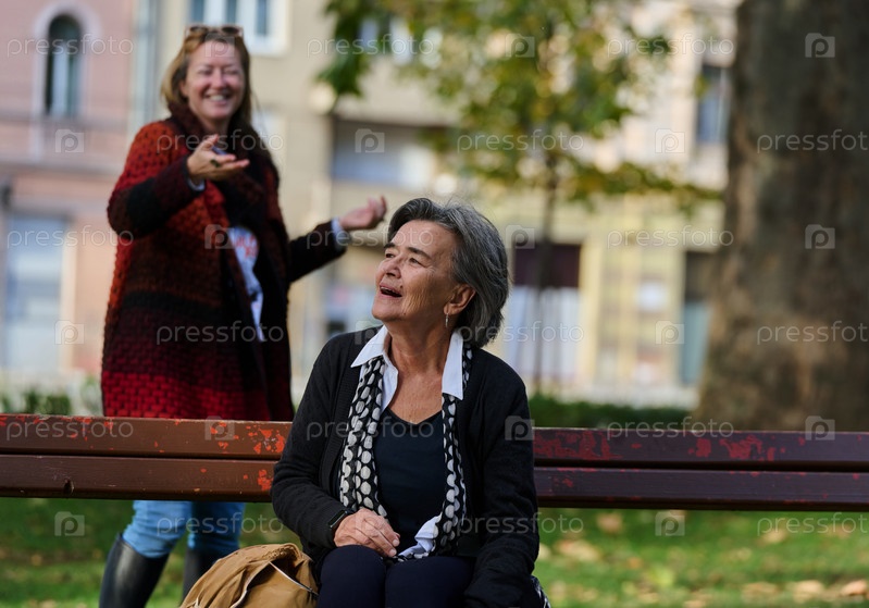 Обнимая поколения: любовь и поддержка дочери для ее пожилой матери в солнечный день в парке