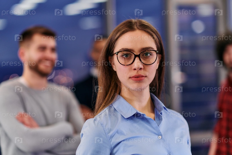 Уверенная в себе бизнес-команда, сплоченная для представления своей компании