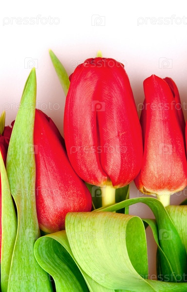 Красные тюльпаны на белом фоне