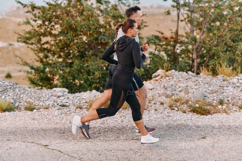 Бодрящая утренняя пробежка для пары в горах