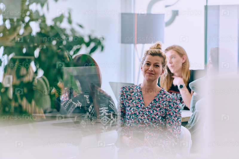 Женская бизнес-группа обсуждает новые темы и стратегии по улучшению клиентской деятельности