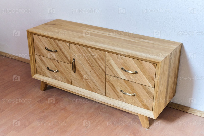 Крупный план готовых деревянных изделий: стол и буфет