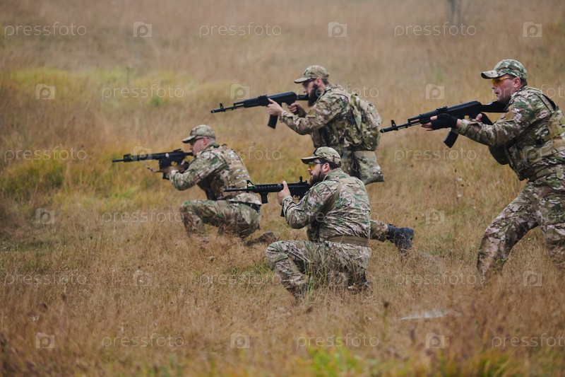 Дисциплинированное и специализированное военное подразделение, облаченное в камуфляж, осуществляющее стратегическое патрулирование и сохраняющее контроль в обстановке с высокими ставками, демонстрирующее свою точность, сплоченность и готовность к специаль