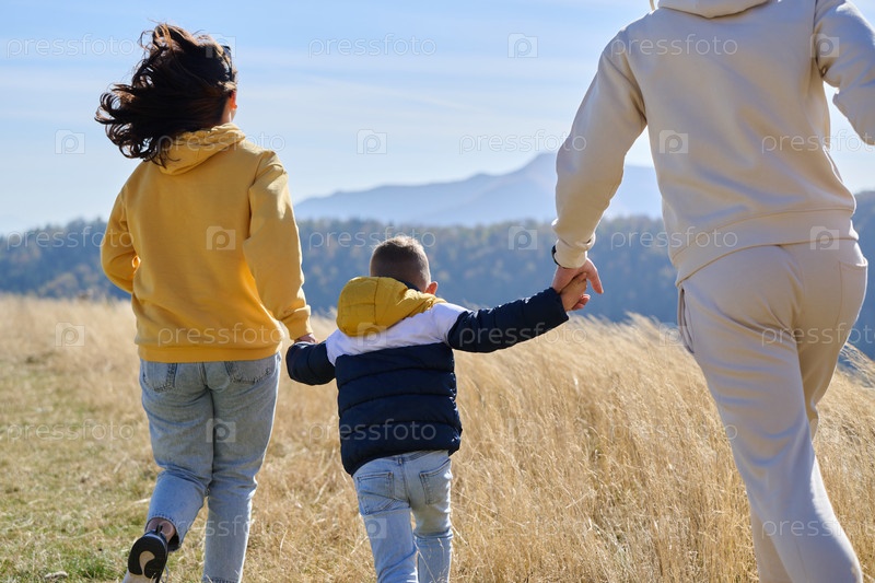 Современная семья вместе со своим сыном наслаждается радостью грязного дня на природе, бегая и играя вместе, воплощая в себе красоту здорового и активного образа жизни