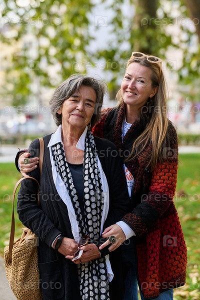 Сердечные объятия: дочь поддерживает свою мать в прекрасный осенний день